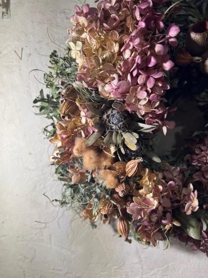 紫陽花と実物のたっぷりしたリース送料込